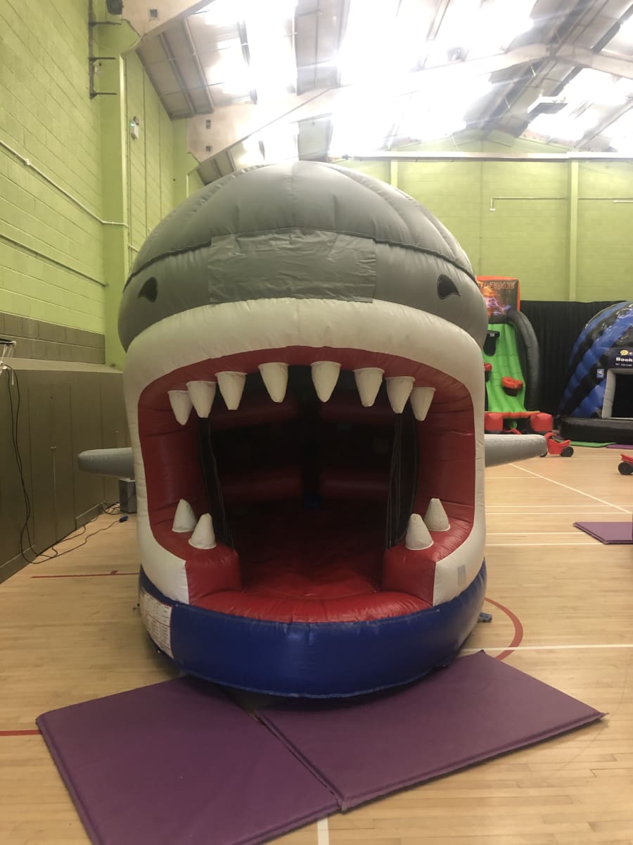 This fantastic 45ft Long Shark Obstacle Course is complete with loads of obstacles, rock climbing wall, slide, space to bounce. Netted sides for supervision.