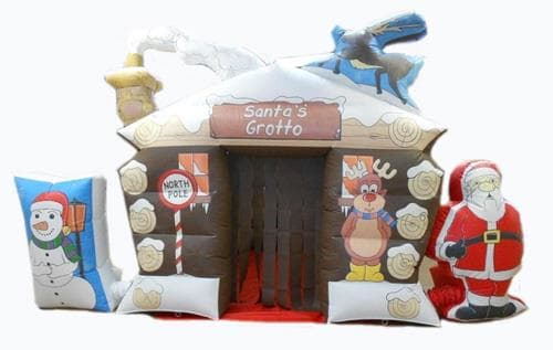 This Grotto inflates within minutes and has lovely Christmas themed artwork. Comes with Inflatable Snow Man and Inflatable Santa
