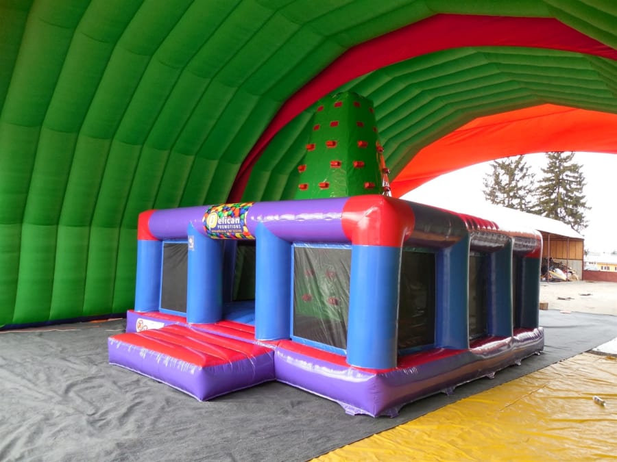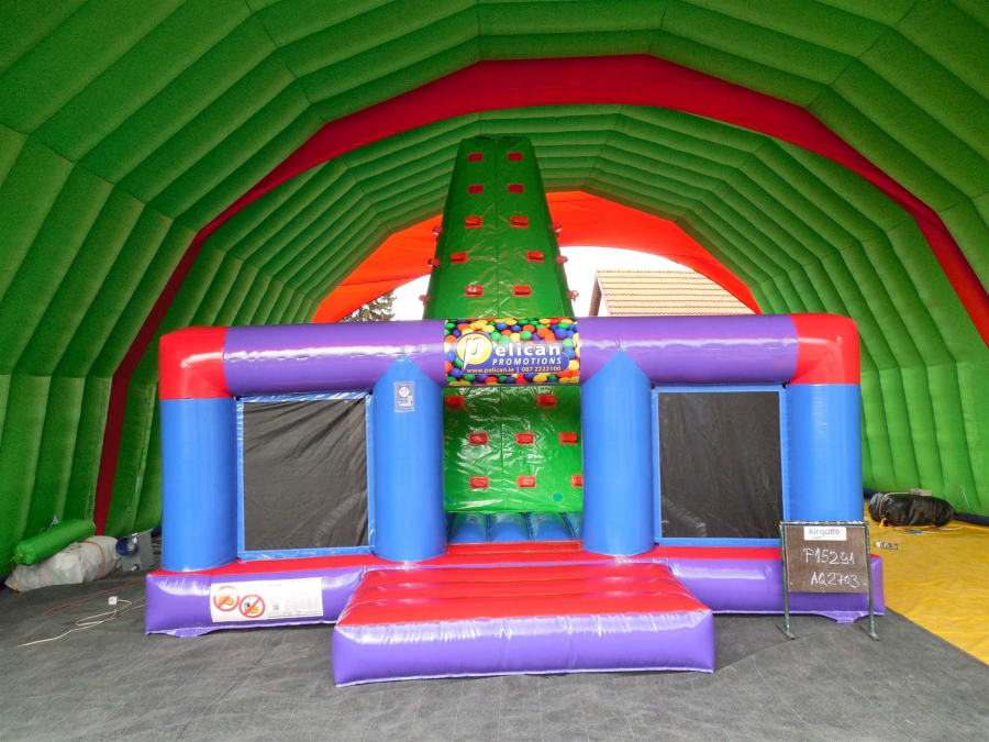 This Unit is 24x24ft, Now Fitted with Auto Belay Rope pulley system which sets to all age and size of kids. Ensures maximum safety and makes it impossible to fall from the top. This game can be used by 4 users at a time.