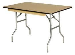 This is a wooden table with folding metal legs for delivery and storage. Linen is available for an extra fee. Seats 6 people and can be used with the red & gold banqueting chairs and the grey folding chairs.