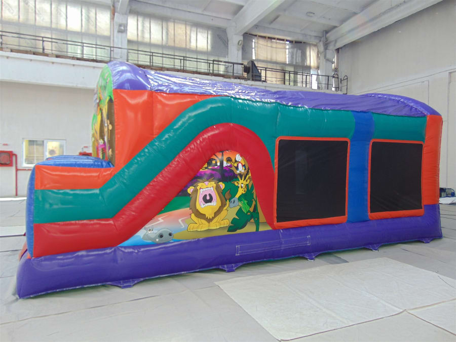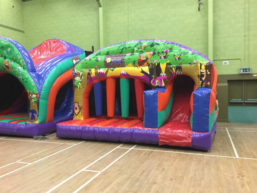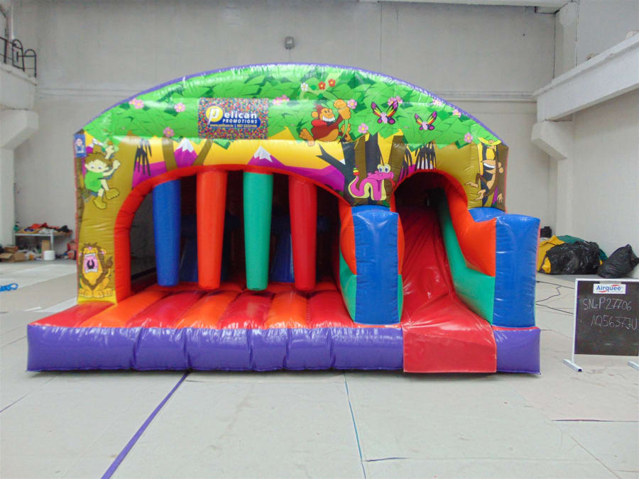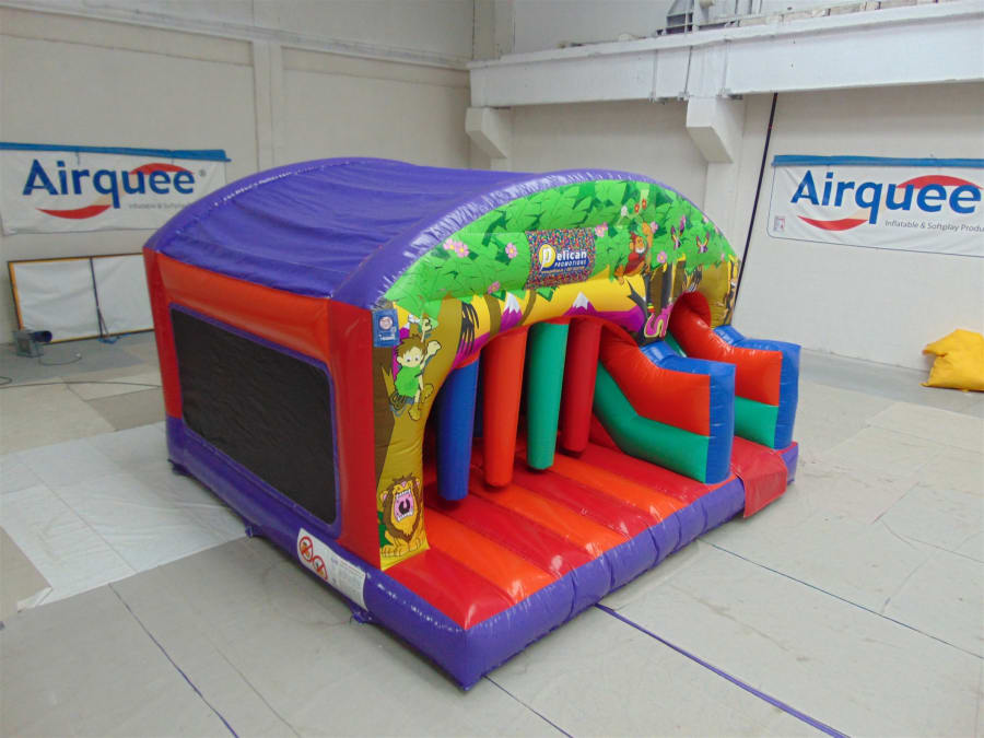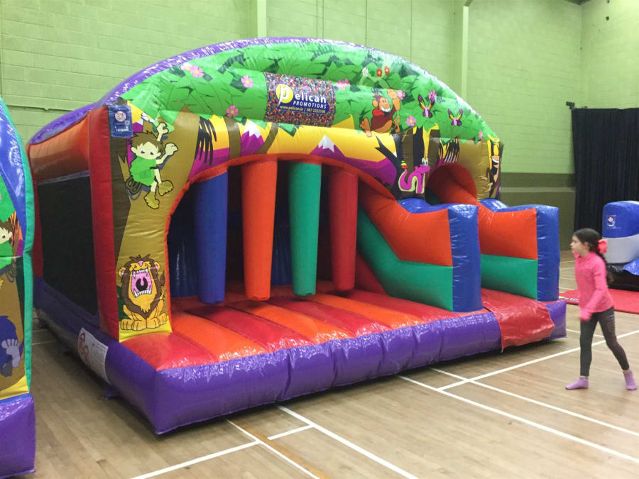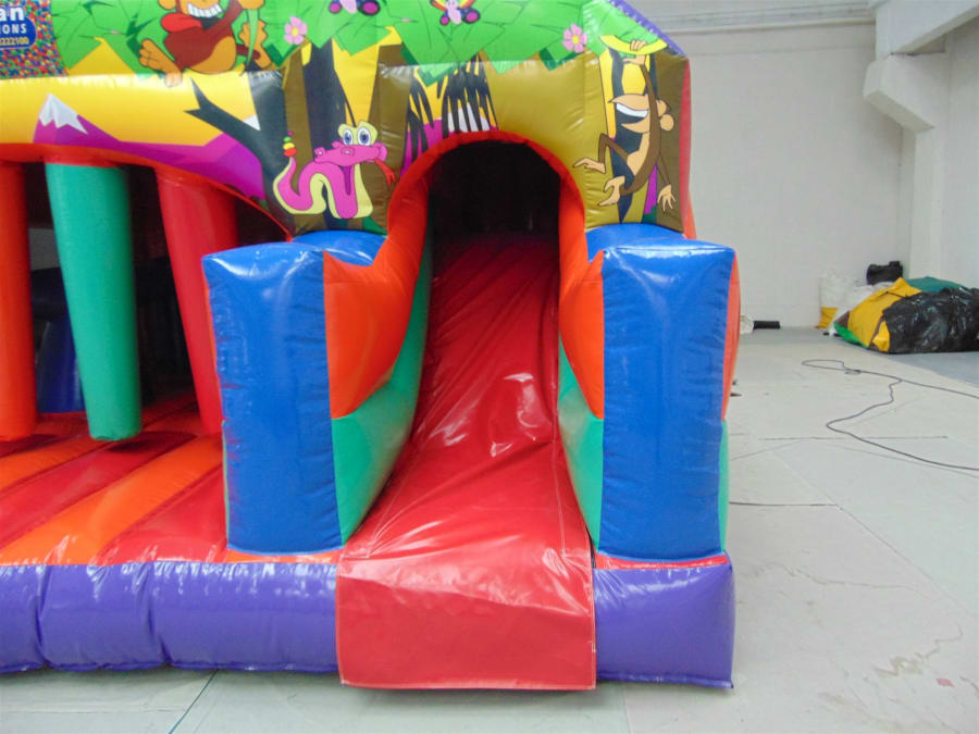 Fully Enclosed Unit with netted sides for supervision. This inflatable is beautifully finished in Bright Jungle Artwork. Suitable for children of all ages.