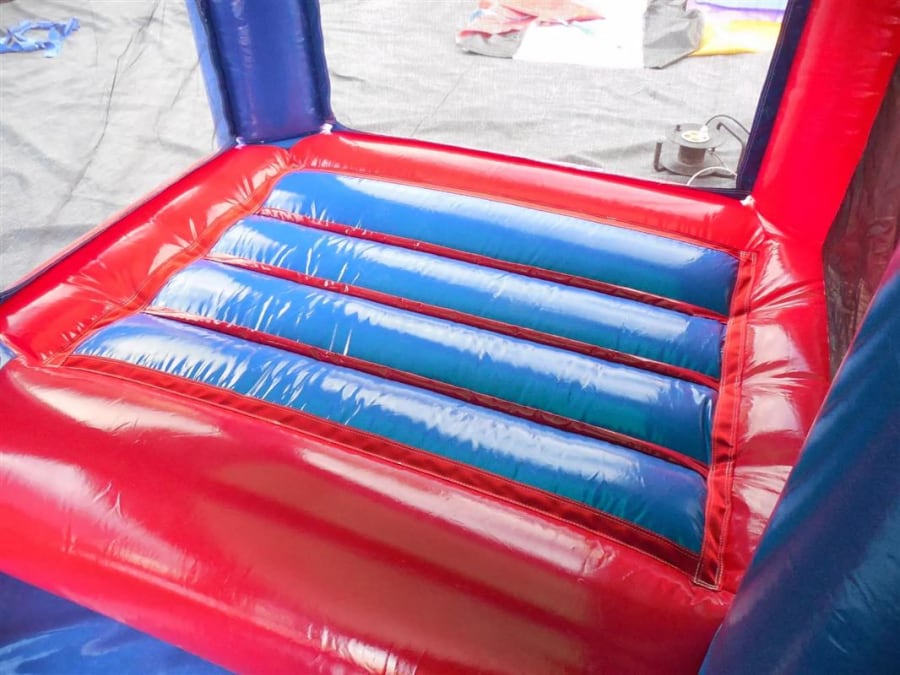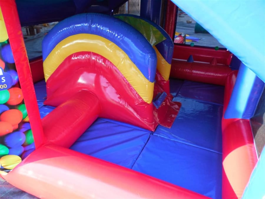 This is a fully covered toddler play area with, bouncing area, slide and soft play shapes.