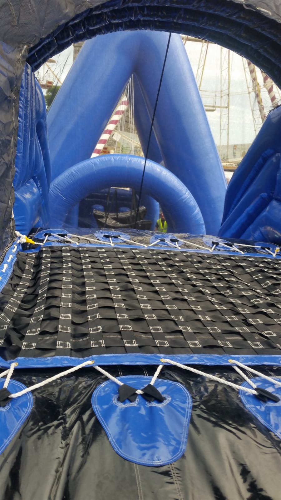 Obstacle challenge involving a 12ft platform, rope bridge, and a slide!