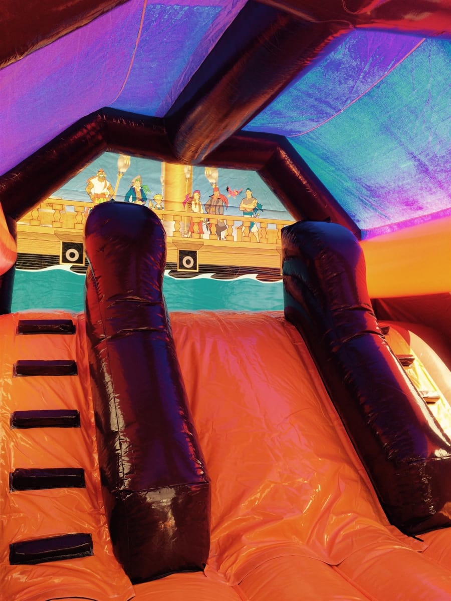 This Package Includes A Large Inflatable Pirate Ship For Older Kids, And A Small Pirate Themed Bouncy Castle For Toddlers!